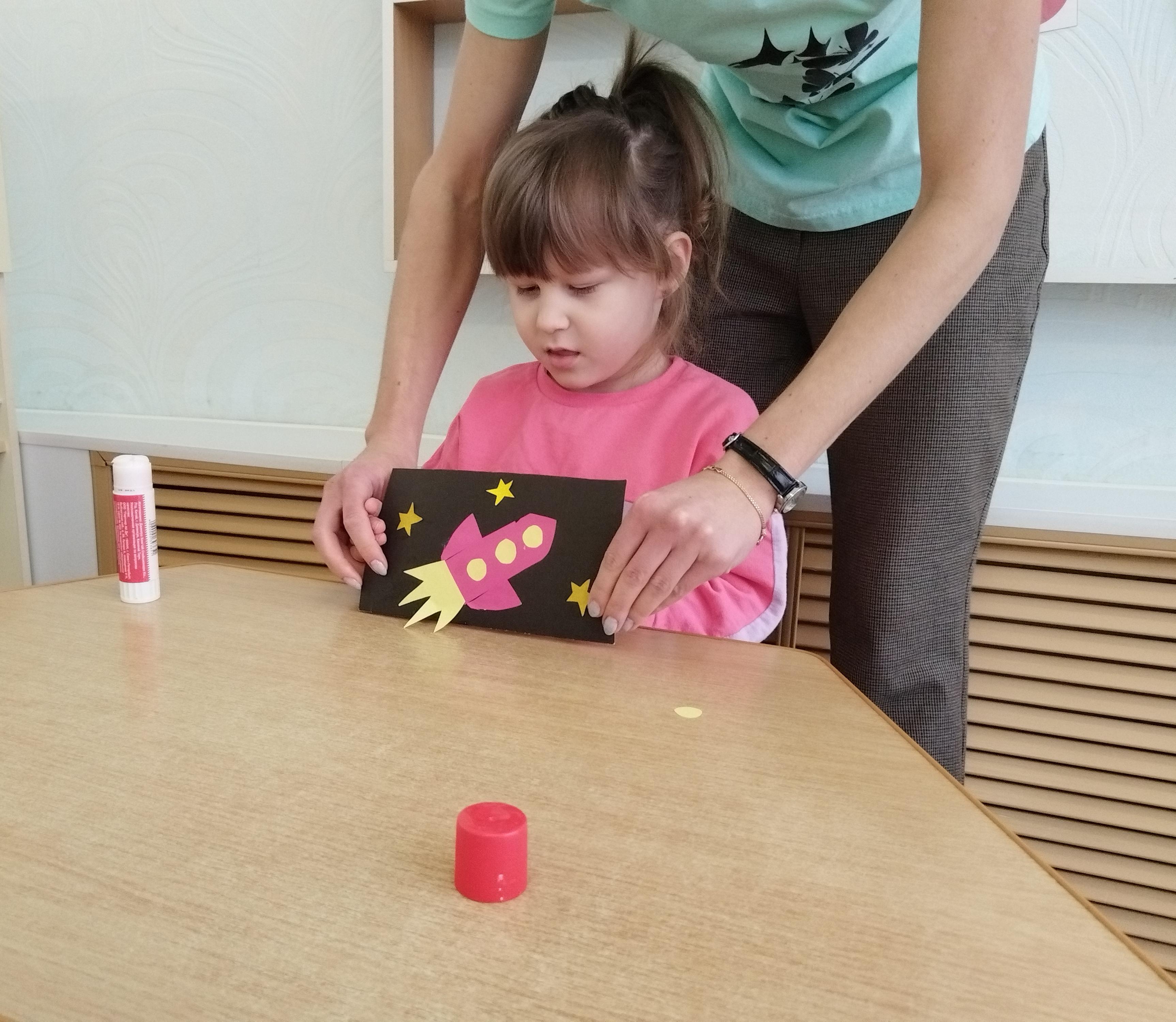 С ребятами 2 группы была проведена беседа на тему "Космос". Сделали аппликацию ракета.